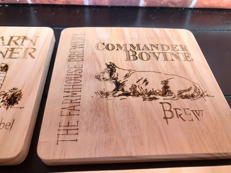 4"X4" wood coasters, laser etched and treated with a beeswax and orange oil conditioner.